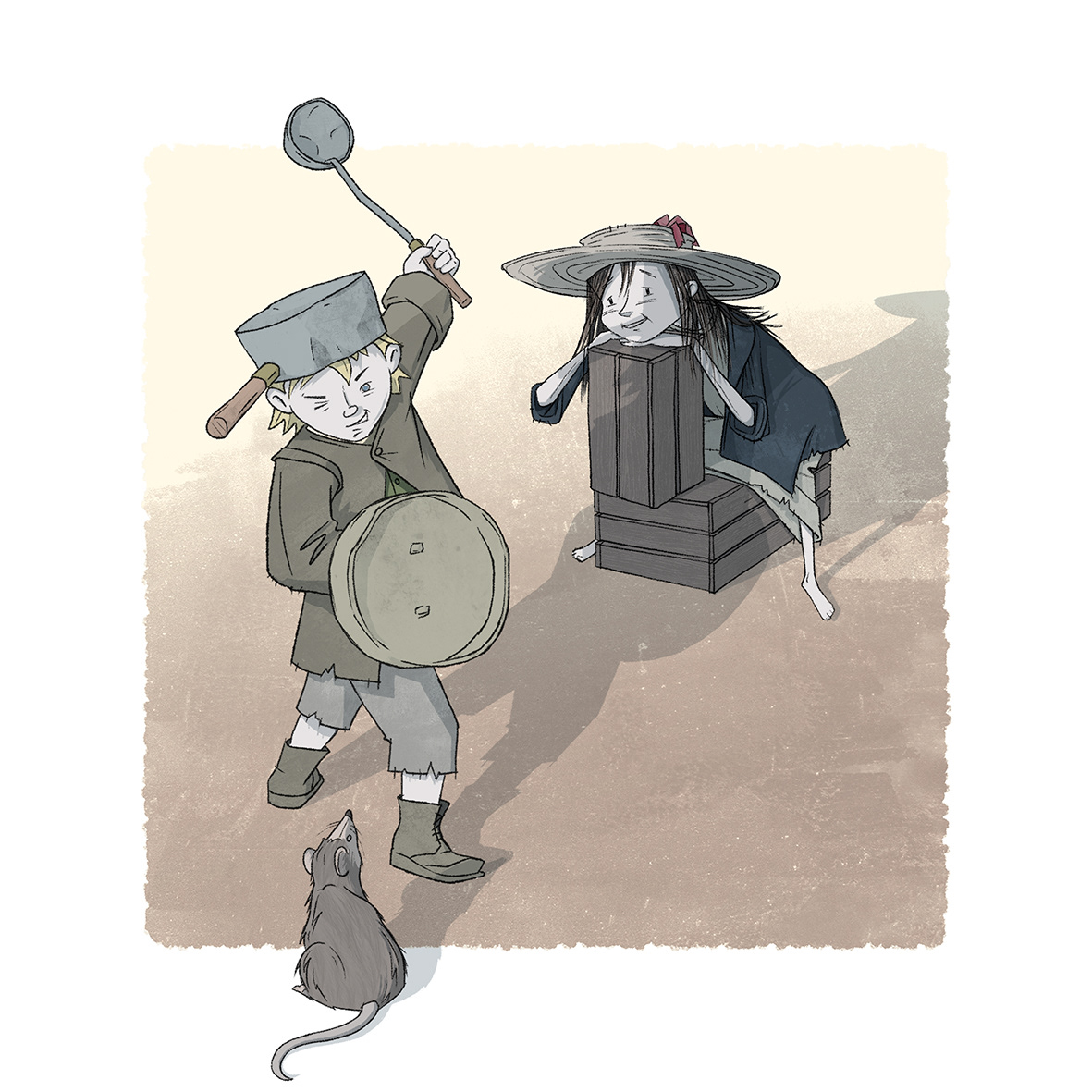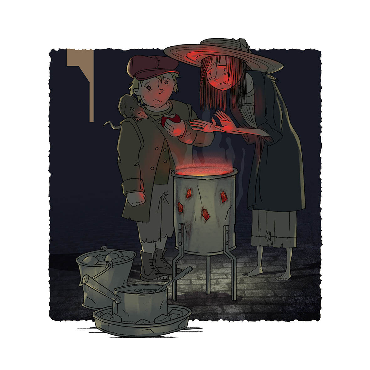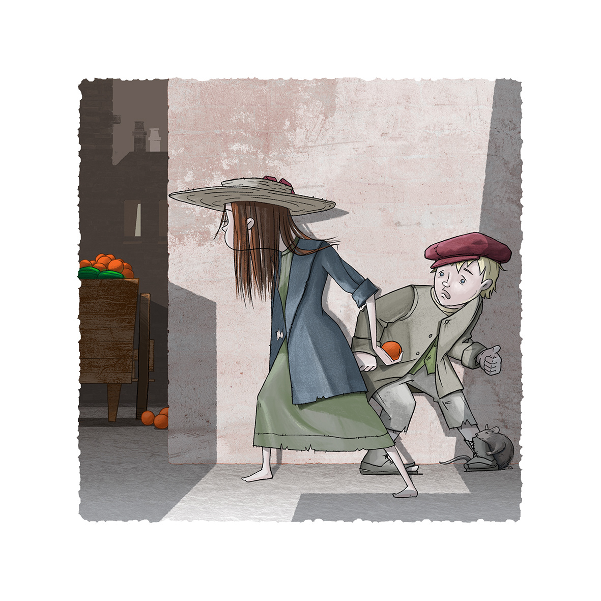 These 4 situations are set on the poor streets of Victorian London, using the interaction between 2 street urchins who have developed an inseparable bond as they help each other survive. They share a pet rat that follows them around.